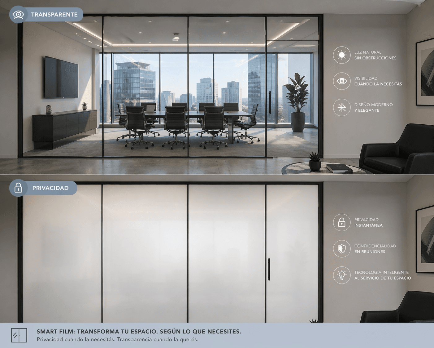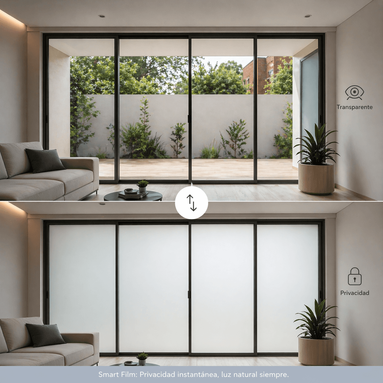 Control inteligente: Controlá el film desde un switch tradicional, control remoto o directamente desde tu smartphone. Compatible con sistemas de domótica y casas inteligentes.